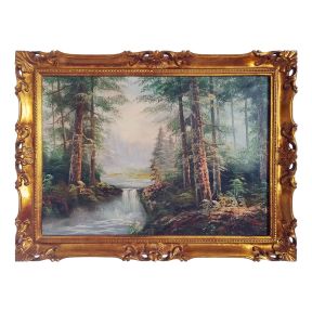 Hand-Painted Oil on Canvas 50x70 cm Woodland Landscape Made in Italy